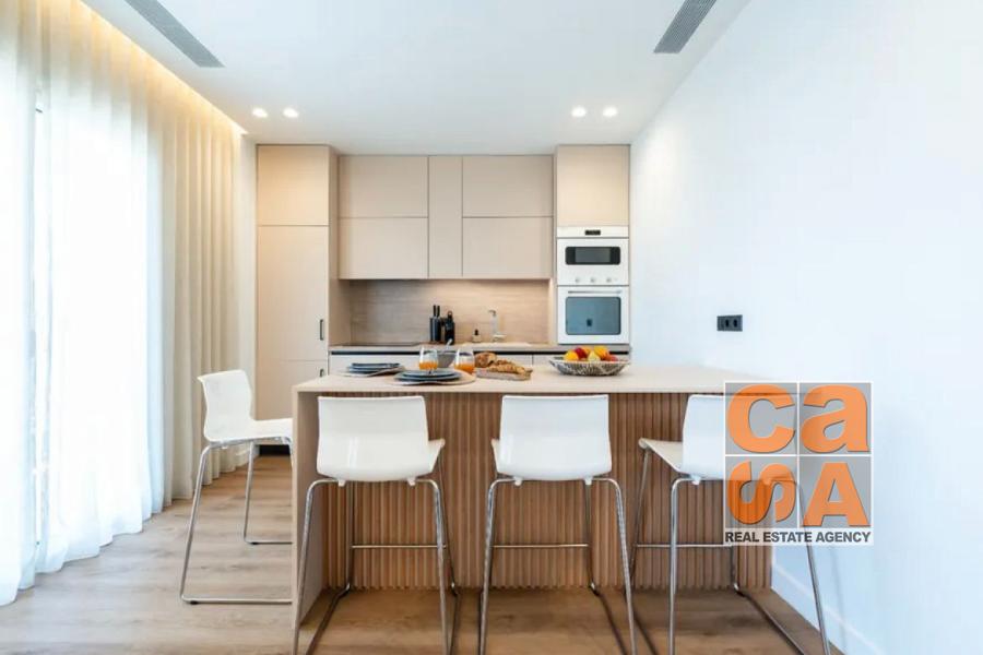 VOULA - KATO Apartment for Rent: 80 sq.m, built in 1980, renovated in 2024. Features 2 rooms on the 4th floor with Air Conditioning heating. Includes inbuilt electrical appliances and is in refurbished condition. Additional features include a balcony, elevator, furnished, intercom, solar heating, security alarm, and security door. Property ID: 17191. Visit casarealestate.gr for more information.